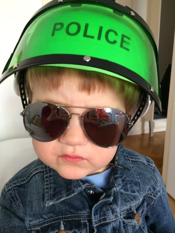 Mini var på Buttericks för första gången igår. En treåring i polishjälm med visir ger många glada miner under en stadspromenad en lördag.